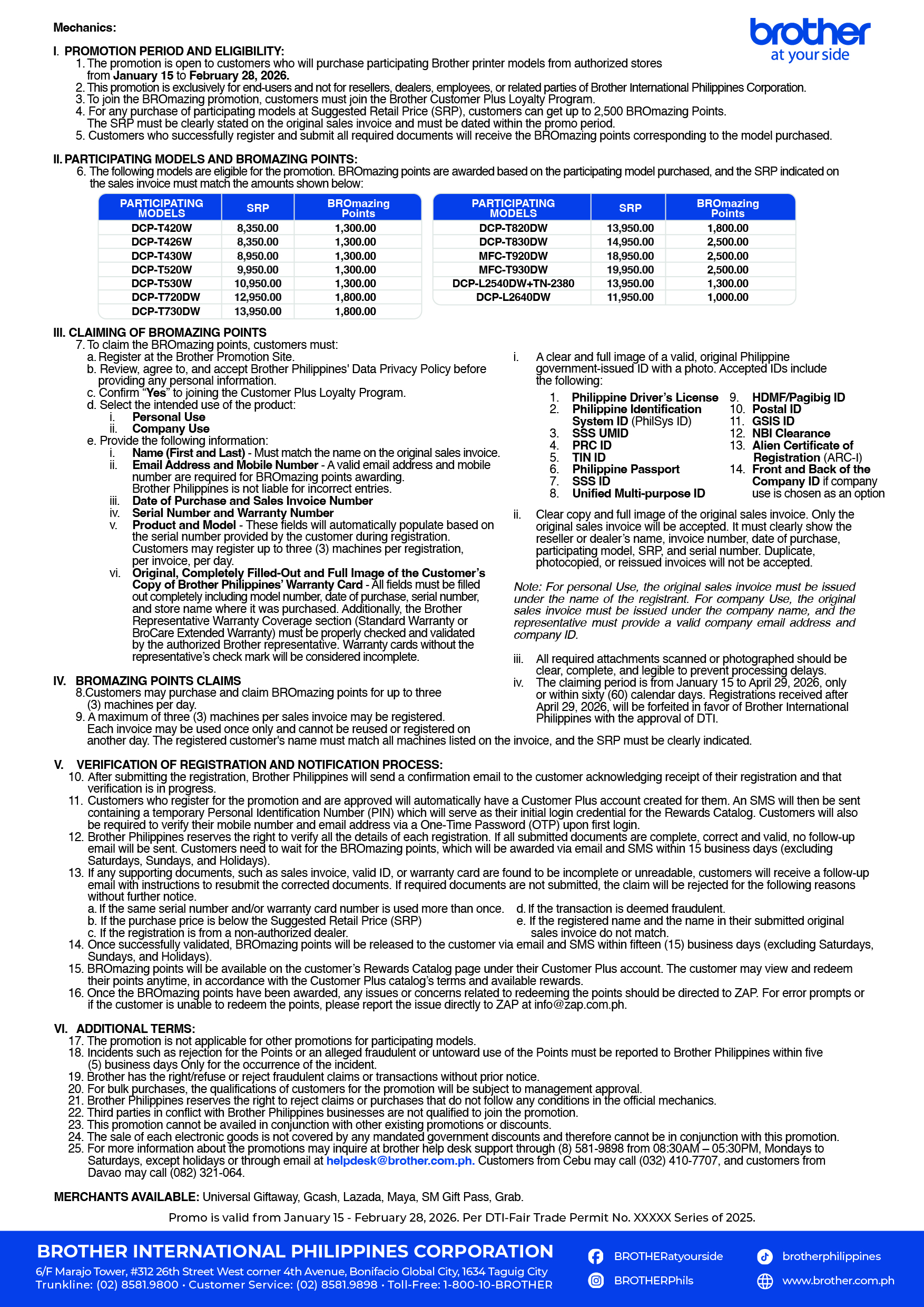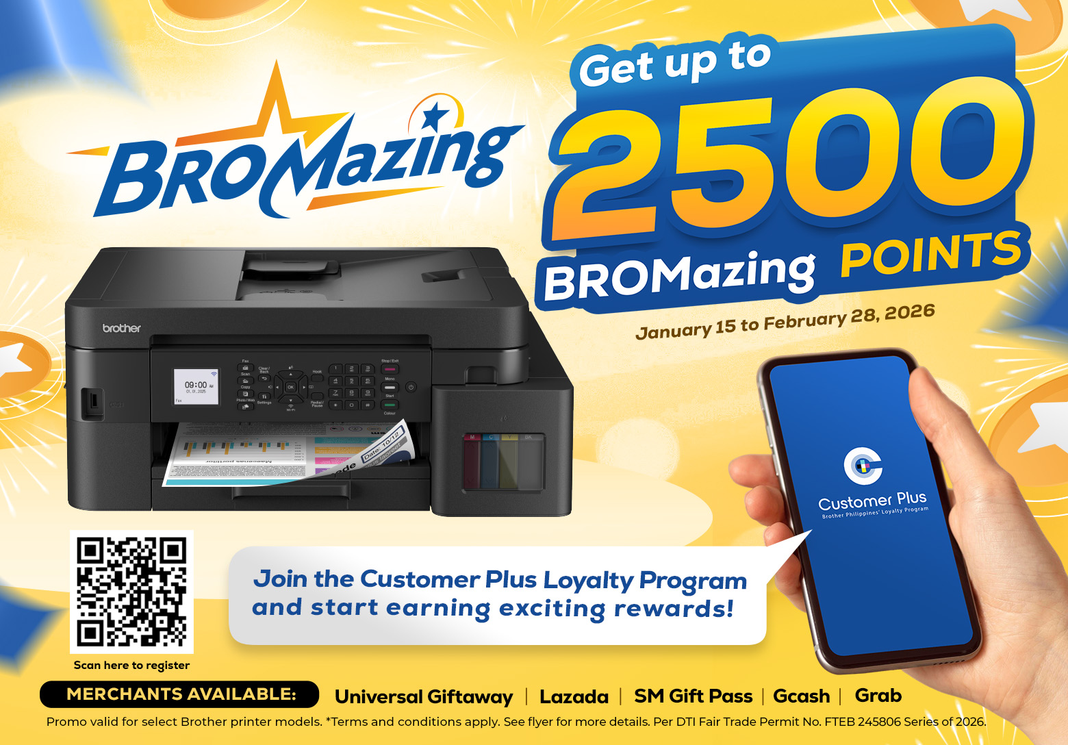 To join the BROmazing promo, customers must sign up or be a member of the Brother Customer Plus Loyalty Program and purchase any of the participating Brother printer model from authorized stores at suggested SRP (Suggested Retail Price). Once a purchase has been made, register at https://brotherph.zap.com.ph/ and fill out the required details. Brother automatically signs up the customer to the membership loyalty program with the information provided in the registration form.