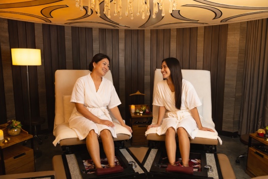 At The Retreat Spa, guests can enjoy a full-body spa journey designed for relaxation and renewal. The Sole Retreat offers shared treatments for two, while the Nail Art Studio and Beauty Salon provide grooming and self-care services to complete the experience.