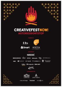 CreativeFest NOW! was presented by the 4As, the Creative Guild, Smart, and PMFTC. The event is sponsored by Nescafe, ABS-CBN, BBDO Guerrero, Cignal, Coca-Cola, ManuLife, Oishi, Dentsu JaymeSyfu, foodpanda, Grey Manila, Hi-Precision Diagnostics, Propel Manila, McDonald’s, The Huddle Room, TBWA\ Santiago Mangada Puno, Wunderman Thompson, and Wilkins Distilled Water. It is organized in partnership with Grupo Agatep, Adobo Magazine, Mesh Lab, and Google.
