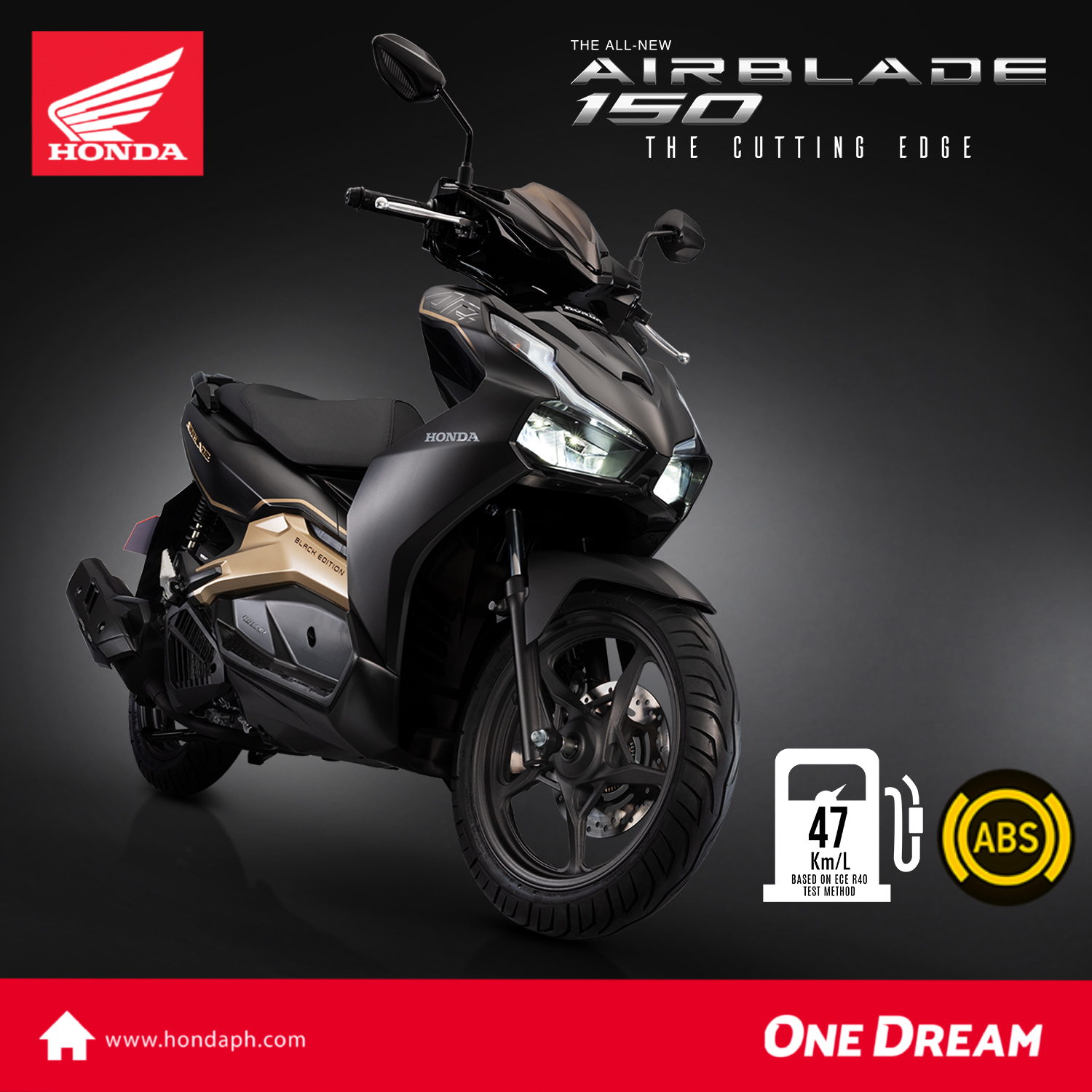 The All-New AirBlade150 is a stylish motorcycle that boasts of its powerful 150cc SOHC liquid-cooled engine for prime acceleration superiority in stop-and-go situations.