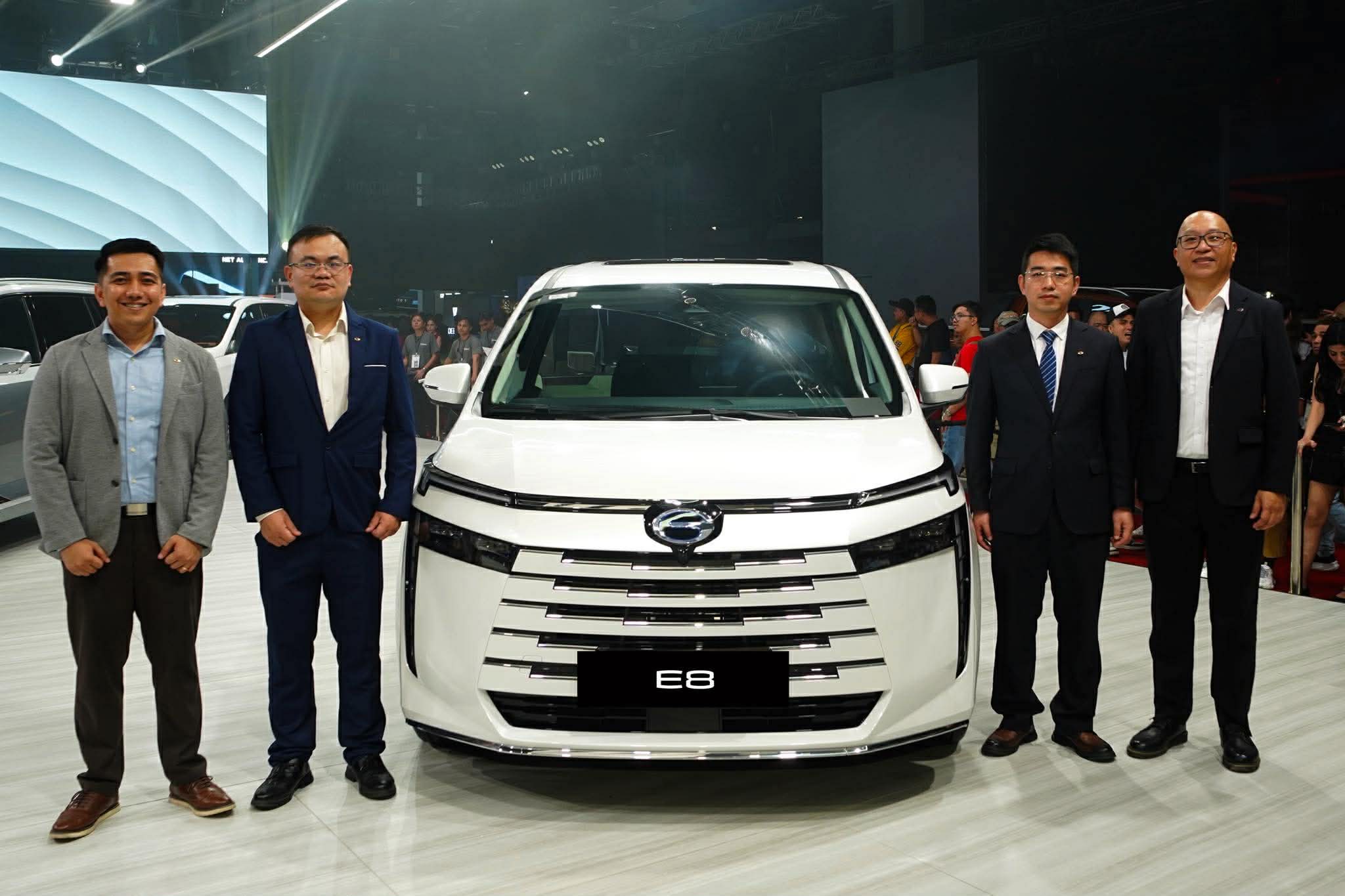 Executives of GAC International Philippines stand beside the GAC GS8 HEV at the 2026 Manila International Auto Show on April 9, 2026. In photo are (left to right) Senior Regional Sales Manager John Paulo del Rosario, Sales Head Lincoln Lan, General Manager Calvin Cheng, and Chief Brand Officer Reggie See.