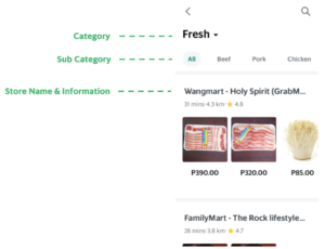 The Categories icons will help users find what they need faster. Tapping on the “Fresh Produce”, “Personal Care”, “Pets”, or even “Home Improvements” icons pulls up a list of relevant stores in the area. Users can now narrow their search further through sub-categories like fresh fruits and vegetables, hair and body care, pet food and treats, and even kitchen and dining essentials, and easily switch between different categories on the same screen.