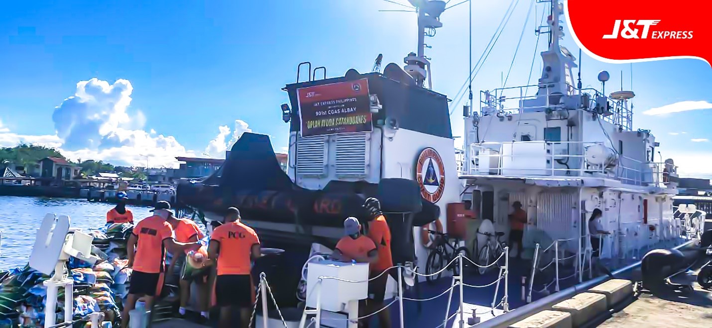 In partnership with 901st Coast Guard Auxiliary Squadron Albay, J&T Express donated 2,000 bags of five kilograms of rice and 2,000 gallons of six-liter distilled drinking water, which will be distributed to affected families in Catanduanes and Albay.