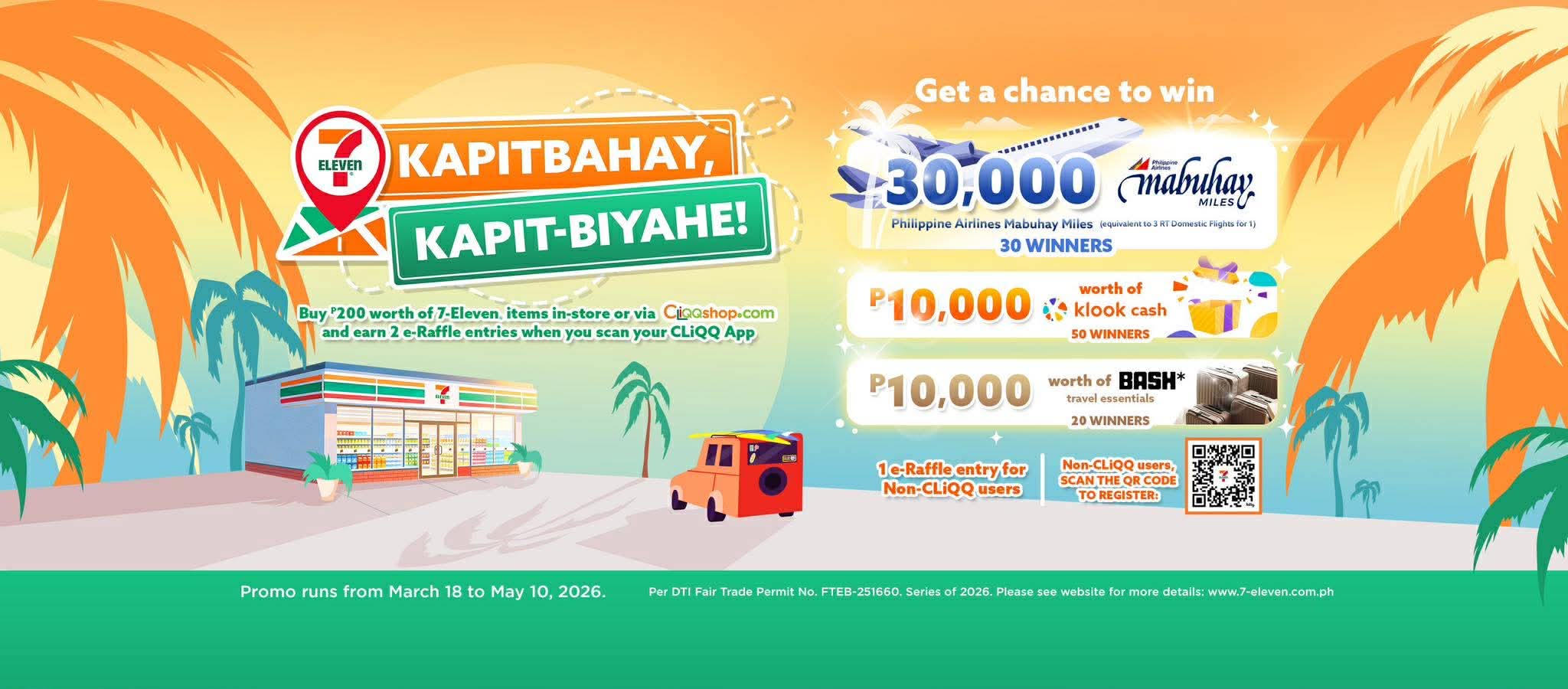 But the hot stuff at 7-Eleven doesn’t stop there. Beyond chill treats, a complete lineup of essentials, and bites for the everyday, everyone’s summer gets even better with the Kapitbahay, Kapit-biyahe E-Raffle Promo. Just by purchasing a ₱200 single receipt on any 7-Eleven item, customers can win 30,000 Philippine Airlines Mabuhay Miles, ₱10,000 worth of Klook cash, and ₱10,000 worth of BASH* Travel Essentials. The promo runs from March 18 to May 10, 2026, and joiners can increase their winning odds by downloading the updated CLiQQ app for extra entries.