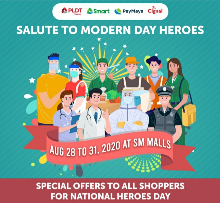Customers of PLDT, Smart, Cignal TV and PayMaya will receive exclusive discounts at SM during the National Heroes Day weekend on August 28 to 31, 2020.