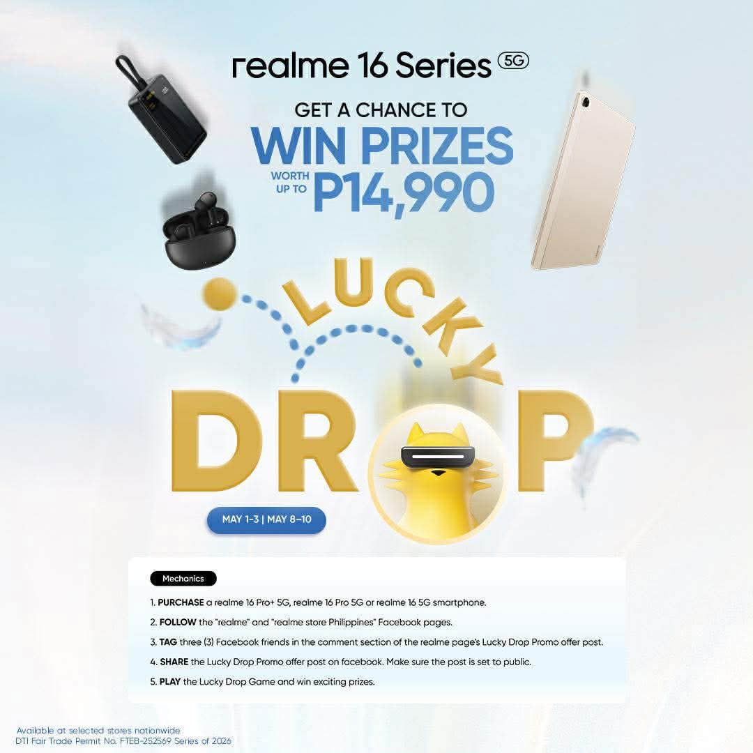 To qualify, customers must purchase any realme 16 Series 5G smartphone from participating realme stores within the promo period. After purchase, store representatives will assist customers in completing the qualification process. Qualified participants will then gain access to the Lucky Drop Game for a chance to win exciting prizes.