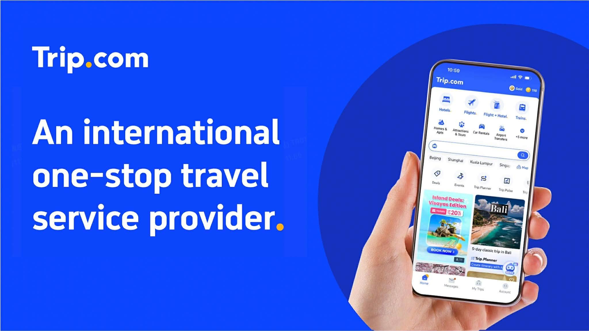 Trip.com is an international one-stop travel service provider, available in 24 languages across 39 countries and regions in 35 local currencies. Offering an extensive hotel and flight network of more than 1.5 million hotels and flights from over 640 airlines, along with over 300,000 attraction and tour products, Trip.com covers 3,400 airports in 220 countries and regions.