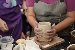 A participant shapes her clay mug during the hands-on workshop.