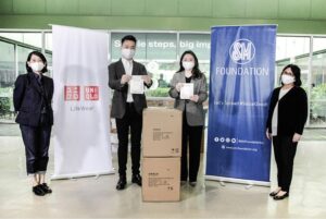 UNIQLO Philippines donates 300,000 pieces of AIRism masks through SM Foundation, Inc. for the families affected by the recent typhoons in the Philippines.In photo: UNIQLO Philippines Co-COO Geraldine Sia, UNIQLO Philippines COO Masayoshi Nakamura, SM Foundation, Inc. Executive Director Debbie Sy, and SM Foundation, Inc. Executive Director for Medical and Health Programs Connie Angeles.