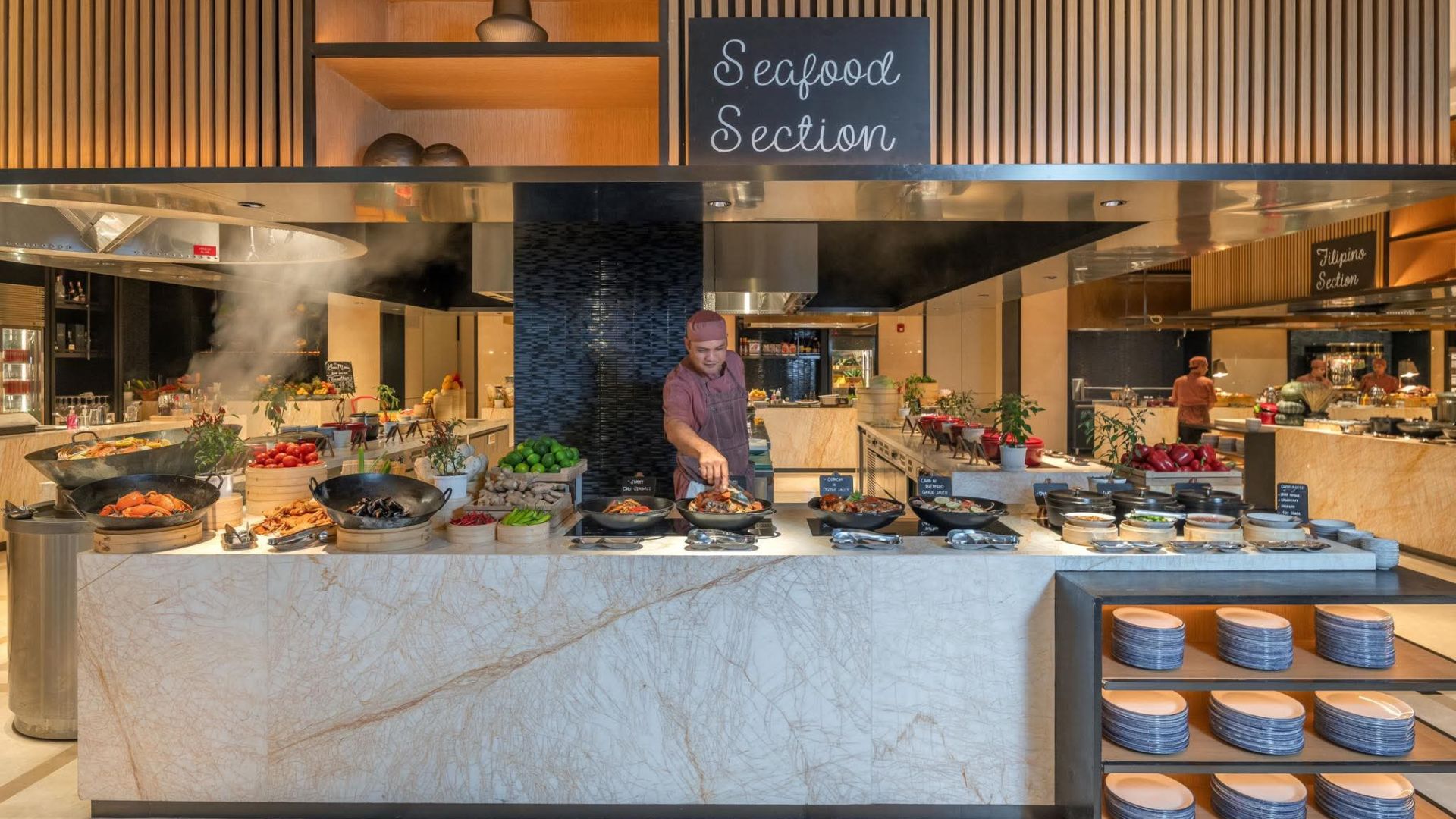 At Red Lantern, indulge in an eat-all-you-can dim sum menu offering a full range of the finest Cantonese delicacies from appetizers all the way to dessert starting at Php 1,888++ per head. For a fresh taste of the sea, Lucky Noodles serves premium grilled seafood from tiger prawns to scallops perfect for sharing for just Php 2,099++ each.